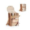 Insulated wine and cheese basket with separated compartment for two wine bottles and an additional compartment for a cutting board, corkscrew, and cheese knife. Made of Willow and 600D polyester canvas and accented with leather. The elegant and unique Corsica wine and cheese basket is perfect for picnics, concerts, or travel. This basket has two compartments for wine bottles and a storage section to carry the amenities included: hardwood cutting board, waiter style corkscrew, and cheese knife. The adjustable shoulder strap makes it easy to carry. Convenient and practical, the Corsica is perfect for wine and cheese lovers.