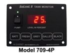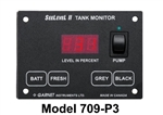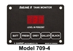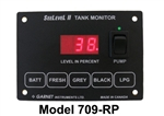The Seelevel II Model 709-4P Tank Monitoring System is designed for RV's with 4 holding tanks and includes a water pump switch. Now you can monitor your batteries, fresh water, gray water, black water and a kitchen (galley) tank levels digitally in percent full accuracy The 709-4P series utilizes 12 inches tank senders that can be stacked to a maximum tank height of 24 inches. Tanks are monitored using Garnet's proprietary external level sensing technology providing accuracy not found in most other systems. Tank senders connect to display via a one wire bus setup which saves wiring costs. LPG tank connection compatible with existing electric senders. Includes monitor, connector assembly, (4) ES tank senders and owners manual.