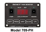 The Garnet Seelevel II Model 709-PH Display offers more of what you want while gauging the levels of your fresh water, grey water, black water, and propane tanks. This monitor takes it to the next level by including a water pump and water heater switch as well as a pilot out indicator.