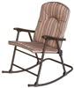 The Cambria Padded Red Rock Rocker by Prime Products is designed with comfort in mind by eliminating the cross bar at the front of the chair. This reduces pressure on your legs allowing for hours of relaxation around the fire or along side your RV. The cushion features 2 inches of padding on the seat and back as well as welted cushion detail. Folds to about 6 inches thick for easy storage. Powder coated steel frame supports 250 lbs. Measures 18 ?? inches between the arms. Safety latch locks rocker in open position. Steel reinforced arms and brackets make this rocker super tough. Dimensions Closed: 39" H x 23" W X 6" D, Dimensions Open: 37" H x 23" W X 33" D, Weight: 15 lbs.