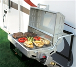 The Camco Olympian 5500 Stainless Steel Grill is a high quality, yet lightweight RV grill that increases flavor without flare-ups. A cast iron smoker plate offers the fullest flavor while minimizing grease fires. After the grill is preheated, the food drippings fall onto the smoker plate, where they vaporize and turn into flavorful smoke. A versatile mounting bracket attaches to a pre-installed mounting rail found on the side of many trailers or can be use as a stand on a table. Also includes quick-connect hose and valve for use with an RV or trailer with a built-in quick connect low pressure propane connection. One-year limited warranty.