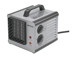 The Broan 6201 Big Heat 120V portable electric heater is the perfect solution for instant heat, with a full 1500 watts of heating power and a reliable, ceramic heating element to ensure a fast warm-up. Made with a rugged steel construction, automatic shut-off (if tipped over on its front or back), and overheat protection means that Broan Big Heat is not only durable, but safe. Light, small and easy to transport with its integrated carrying handle. Features a high, low, or fan only setting with quiet operation, a 1200 watt economy setting, easy to see indicator lights and a built-in thermostat to hold the comfort level you select. Great for use in the garage, workshop, boat or RV. No matter where you put it to work, it's just what you need, right when you need it. Dimensions: 5 7/8" x 6" x 5 1/4". 6' power cord with safety flanged plug. One year manufacturer warranty. Included: (1) Broan Big Heat 120V portable electric heater.