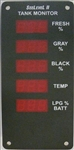 The Model 714 SeeLevel II Tank Monitoring System features the most comprehensive display Garnet Technologies offers! View the level of each holding tank, two temperature sensors and LPG or battery voltage in real time. Includes (1) monitor, (3) 710ES tank sensors, (2) temperature sensors, monitor mounting screws, monitor connector with wire leads and instruction manual.